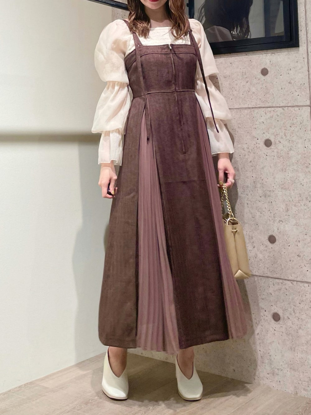 ひ な た(mysty woman 本部)のジャンパースカート「BOXプリーツ切替ジャンスカ 219404」を使ったコーディネート