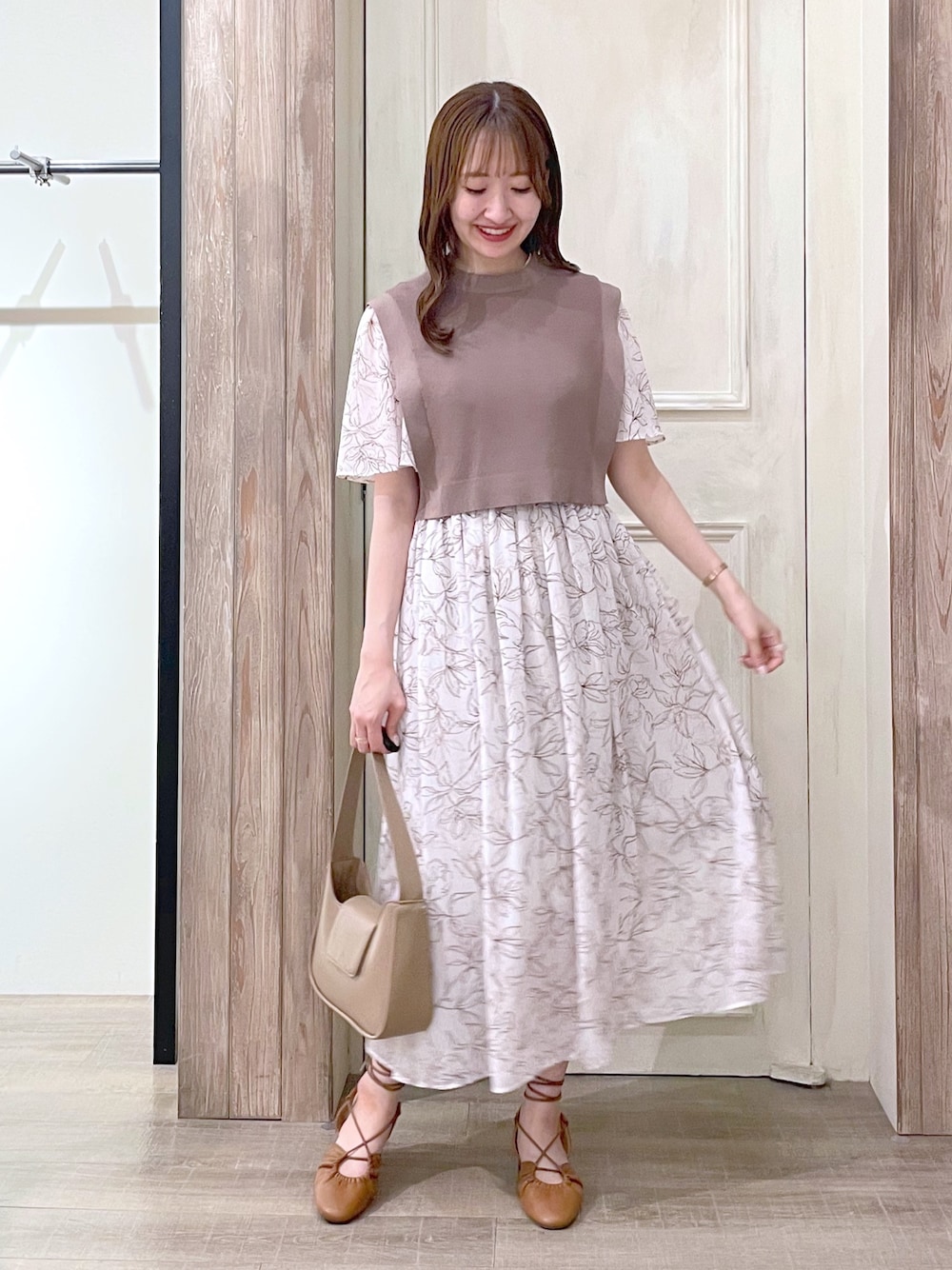 ひ な た(mysty woman 本部)のワンピース/ドレス「ベストセットツイン柄ワンピース」を使ったコーディネート