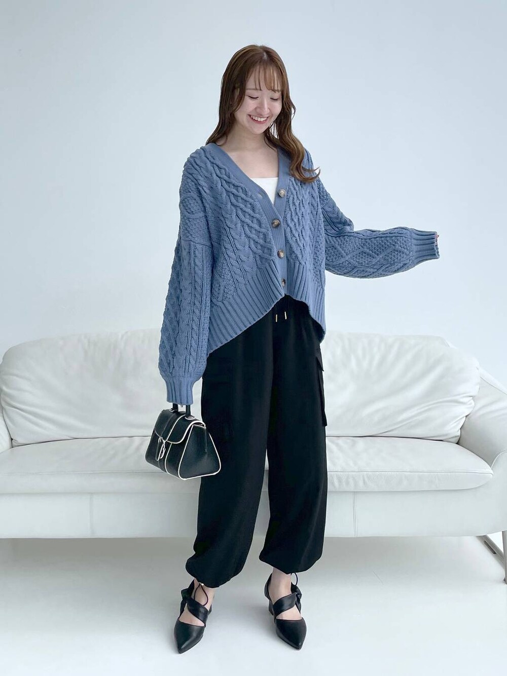 ★ケーブル編みVネックカーディガン 表面感のあるケーブル編みが綺麗なカーディガン。 前後差のある着丈なので すっきり見せつつヒップ周りもカバーしてくれます! ★ヴィンテージサテンドロストカーゴパンツ サテンの光沢感が上品なカーゴパンツ! カジュアルになりがちなカーゴパンツも 程よいサテン地で綺麗めな印象にしてくれます。 裾に絞りもついているので ボリュームは好みに合わせて調節できます!
