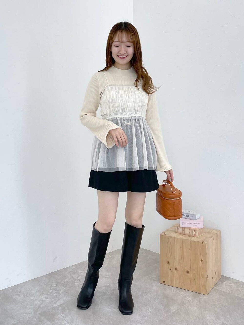 ★チュールキャミリブニットSET リブニットとチュールキャミのセットアイテム! リブニットはフレアスリーブで手をすらっと見せてくれます。 トレンドのチュールキャミは お手持ちのTシャツやブラウスにレイヤードすれば 季節問わず長く着ていただけます♪ ★ツイードベルトショートパンツ ツイードの秋冬らしいショーパン! ハイウエストとウエストのベルトで 脚長効果抜群◎ ベルトはフロントのバックルがおしゃれです!