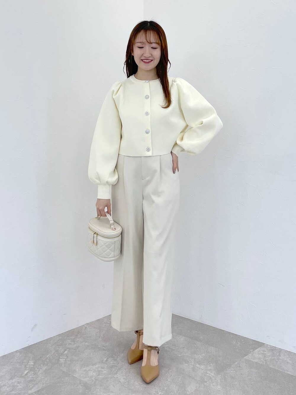 ★ビジューボタンカーデ ビジューボタンが大人可愛いカーディガン! ビジューボタンはそれぞれデザインが違うのもポイント! 前を閉めてトップスとして着ても映える一枚です。 ★サイドボタンハイウエストパンツ ウエストのサイドのボタンがアクセントのパンツ! とろみ感のある素材でお仕事コーデにも使えるパンツです◎ センタープレスとハイウエストで 美脚効果も抜群です!