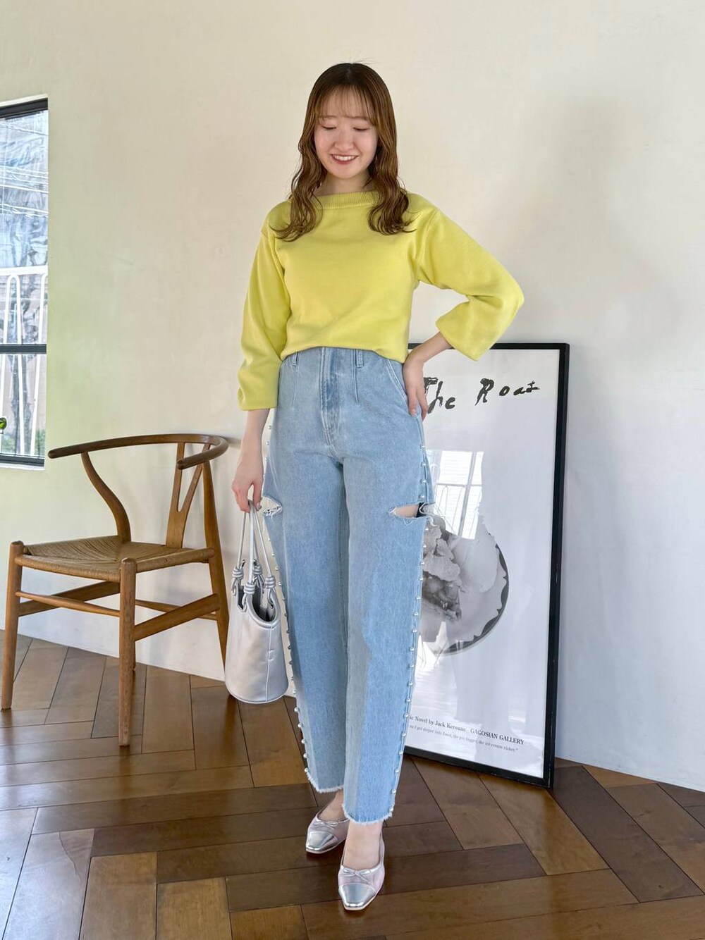 ★ボリュームスリーブボートネック 春カラーのニット! ボートネックでデコルテラインを綺麗に見せてくれます。 ボリューム袖ですが身頃はスッキリなので キャミワンピやジャンスカのインナーとしても大活躍間違いなし! ★サイドスリットパールデニム トレンドのパールデニム! 程よい大粒のパールがサイドにあしらわれていて カジュアルになりがちなデニムも 女性らしく着ていただけます! サイドスリットはそこまで開かないので 肌見せ苦手な方でも安心です♪