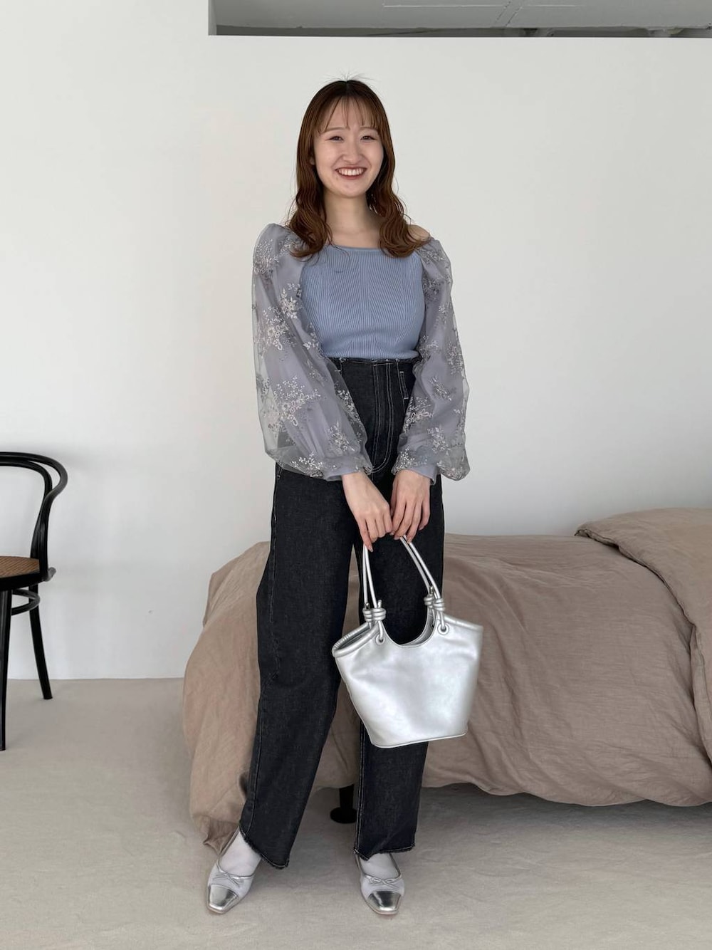 ★フローラルスリーブプルオーバー ニット素材とフローラル生地のドッキングトップス! 身頃はリブニットですっきりで袖は程よいボリュームで メリハリあるシルエットに。 肩の部分にゴムが入っているので オフショルも楽しめます♪ ★ハイウエストカーブデニムパンツ トレンドのカーブデニムがミスティからも登場! 程よいカーブシルエットとハイウエストで 女性らしい印象で着ていただけます! サイズ展開もあるので身長に合わせて選べます!