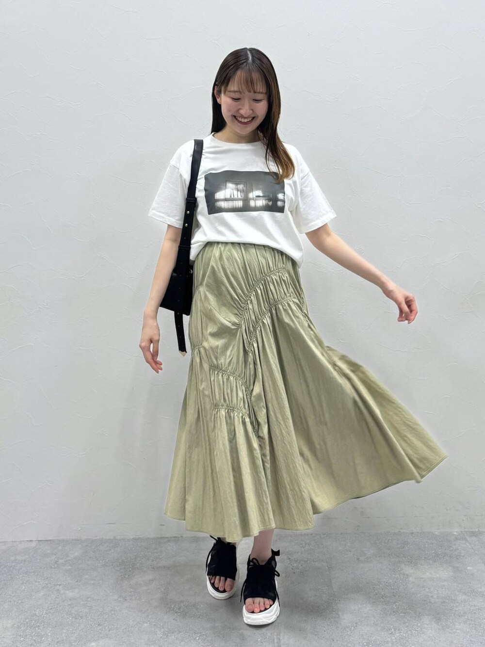 ★コラボアートフォトTシャツ フォトグラファーの花盛友里さんとのコラボアイテム! シンプルなTシャツも フォトがコーデを華やかに見せてくれます! ジャストサイズのTシャツでインした時も すっきり着られます! ★ランダムシャーリングスカート 全方位にシャーリングが入っていて どこから見ても可愛いスカート ウエストは総ゴムなので妊婦の私でも履けました!!