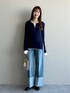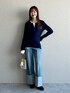 ★柔らかヘンリーネックロンT おしゃれ見えするヘンリーネックのシアートップス。 ヘンリーネックなので閉じてきてもワンポイントになるし ボタンの開閉で好みのネックの開き具合に調整可能。 トレンドの重ね着してもおしゃれですし 一枚でもサラッと着やすいので着回し力◎ ★ターンアップデニムワイドパンツ 穿くだけでこなれ感の出るロールアップデニム。 ワイドなシルエットですが、 センタープレスが効いていて縦ラインを綺麗に見せてくれます。 ロールアップ部分は自分で好きな折り幅に変えられるので どの身長の方でも安心して着られます◎ 160cmの私はMサイズで長さはちょうど良かったですが ウエストが少し大きかったのでベルトをすると シルエットも綺麗に着られました!