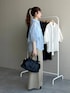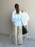 ★コクーンシアーシャツSS 程よい透け感が涼しげなシャツ! 肘が隠れる袖丈で二の腕カバーもばっちり◎ お尻まで隠れる着丈なのでアウトで着れば 腰、ヒップラインも気にせずに着やすいです! ★2WAYチロクロスパンツ しっかりめ素材でシルエットがきれいなチノパンツ。 センタープレスが効いているので ワイドなシルエットでもすっきり見えます。 S,Mの2サイズ展開で 160cmの私はMサイズがずるっと穿けてちょうど良かったです! ウエストは少し緩かったのでベルトで調整すると シルエットも綺麗に穿けました!