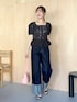 ★総レースペプラムブラウス 全骨格盛れるブラウス! ペプラムの切り替え位置が高めで ウエストをきれいに見せてくれます! アウトで着てもすっきり着られる着丈ですが 後ろが長くなっているので ヒップラインもカバーできて安心♪ 骨ストが苦手なパワショルですが スクエアネックで首元すっきりなので バランスよく着られました!! ★ターンアップデニムワイドパンツ 穿くだけでこなれ感の出るロールアップデニム。 ワイドなシルエットですが、 センタープレスが効いていて縦ラインを綺麗に見せてくれます。 ロールアップ部分は自分で好きな折り幅に変えられるので どの身長の方でも安心して着られます◎ 160cmの私はMサイズで長さはちょうど良かったですが ウエストが少し大きかったのでベルトをすると シルエットも綺麗に着られました!