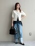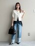 ★サマーツイードライクカーディガンSS ツイード調の高見えカーディガン。 見た目以上にさらっとした素材なので 夏まで長く着ていただけます! 金ボタンのアクセントもあるので 羽織ではもちろん、前閉じてトップスとして着ても様になる一枚です! ★イレヘムキャミチュニック トレンドのキャミチュニック! 上品な光沢感のサテン地にレースが施させていて 女性らしい印象に。 アジャスターで長さ調節も可能。 コンパクトなトップスの上に着てもいいですし キャミの上からスウェットやカーディガンを重ねて 今年らしいレイヤードスタイルもおすすめです! ★ターンアップデニムワイドパンツ 穿くだけでこなれ感の出るロールアップデニム。 ワイドなシルエットですが、 センタープレスが効いていて縦ラインを綺麗に見せてくれます。 ロールアップ部分は自分で好きな折り幅に変えられるので どの身長の方でも安心して着られます◎ 160cmの私はMサイズで長さはちょうど良かったですが ウエストが少し大きかったのでベルトをすると シルエットも綺麗に着られました!