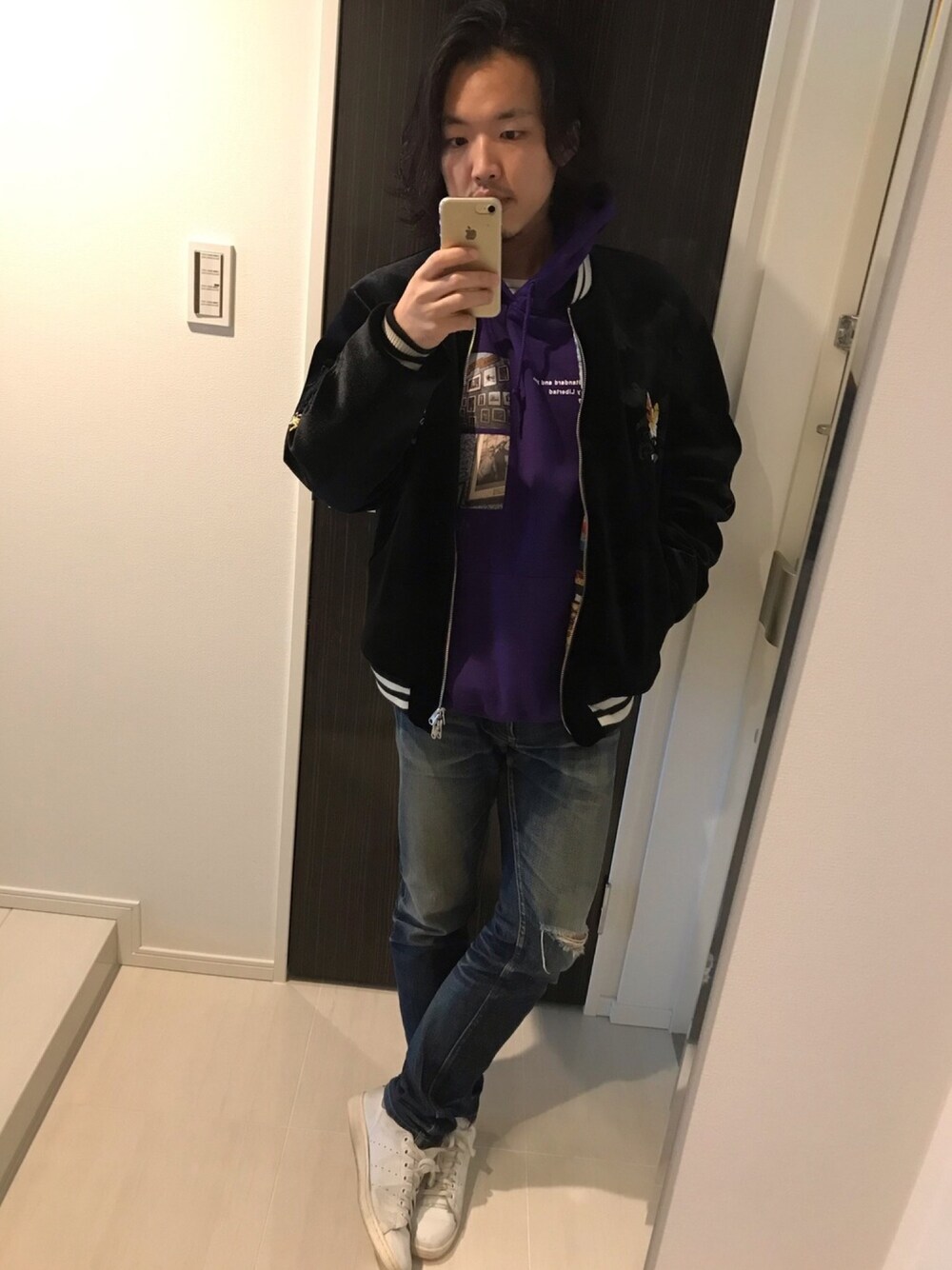 はすみのスカジャン「SEVESKIG セブシグ / VELVET EMBROIDERY SOUVENIR JACKET ベルベットエンブロイダリースーベニアジャケット スカジャン / JK-SV-HA-1010」を使ったコーディネート