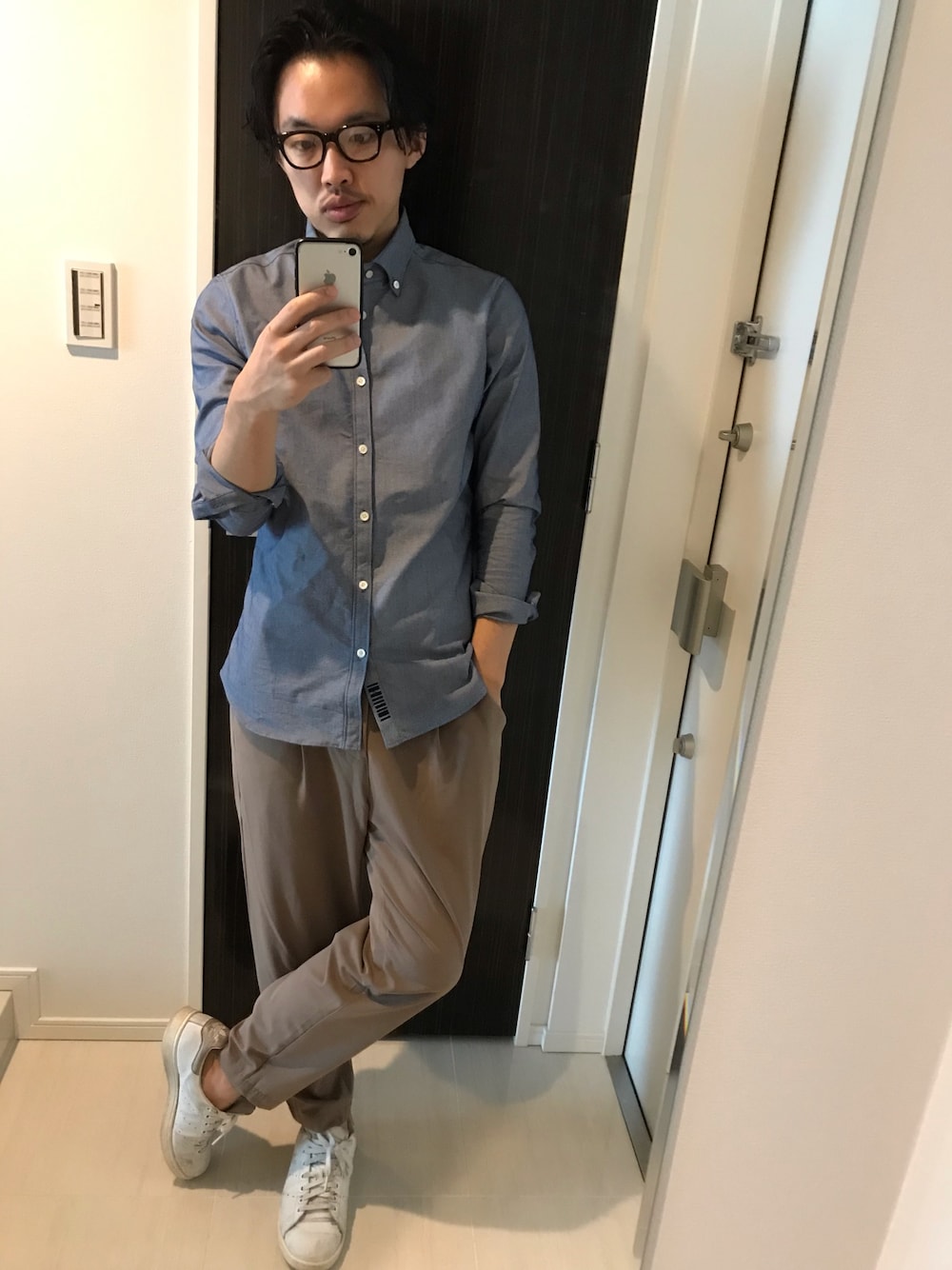 おはようございます☀ 今日のコーデ。 シンプルなボタンダウンのシャツにTRのテーパードパンツ。白スニーカーにメガネも合わせて小綺麗にインテリ気取り😄 柄シャツからのギャップがありすぎかな?笑 週明けの月初め、細かくやることが溜まっているので、ちょっと早めの出勤💦 でも週末にたくさん充電出来たので、今日からまた頑張れます! 皆さんも今日から一週間、頑張っていきましょう🙌