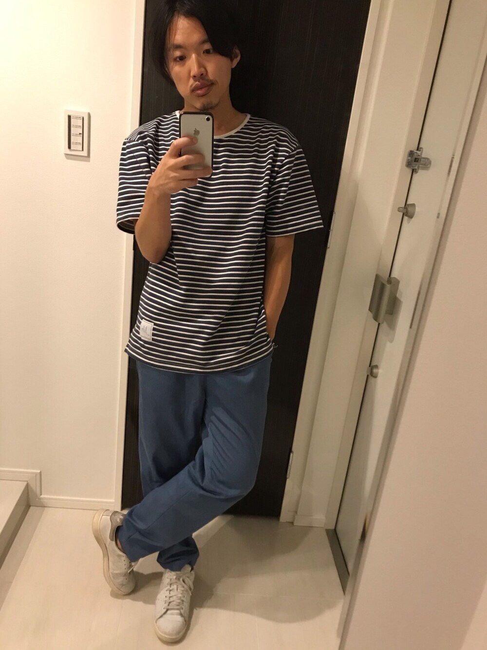 はすみのスウェット「msw460-オーバーサイズミニ裏毛ボーダースウェット」を使ったコーディネート