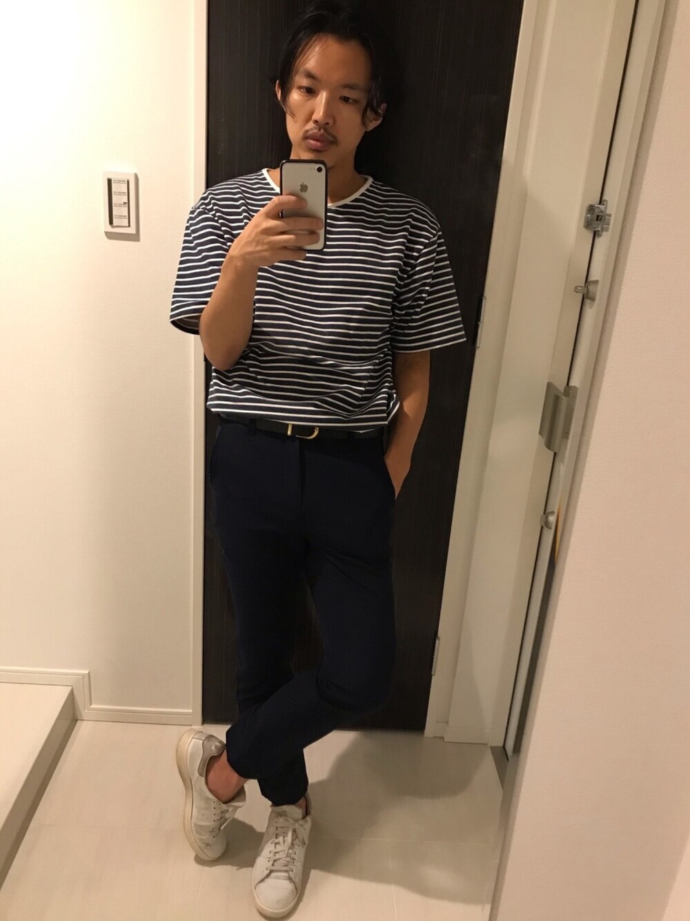 おはようございます☀ 今日のコーデ。💙×⚪️ ボーダーのゆるトップスはパンツインで。 今週も一週間頑張っていきましょう🙌