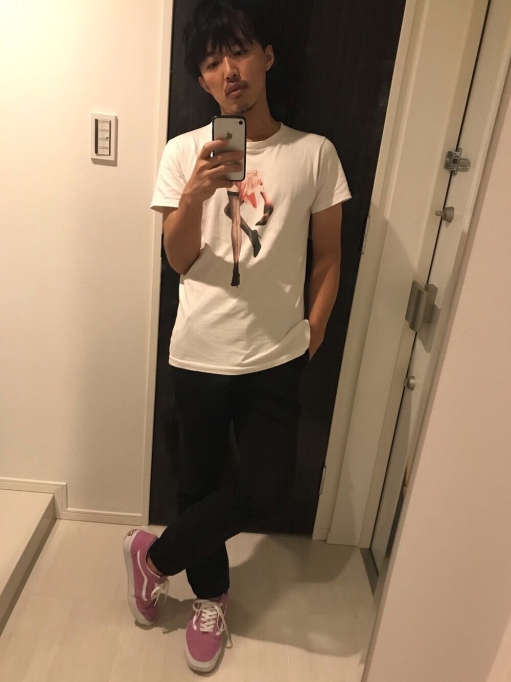 おはようございます☀ 今日のコーデ。まだまだ夏っぽい😅 今日あっついし、パンツが黒だから、まあいっか✨フラミンゴとスニーカーのピンクを合わせました。 今日はひさびさの休日出勤😩 仕事の方、一緒に一日頑張りましょう! お休みの方、素敵な休日をお過ごしください🙌