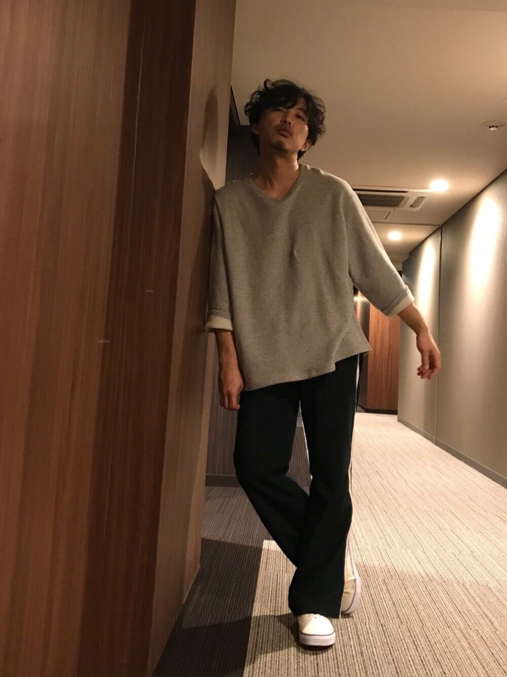おはようございます☀ 顔がひどいな…笑 今日のコーデ。 ゆるサイズの裏毛トップスに、ストレッチ入りのラインパンツという、楽チンコーデ。 今日も素敵な一日をお過ごしください🙌