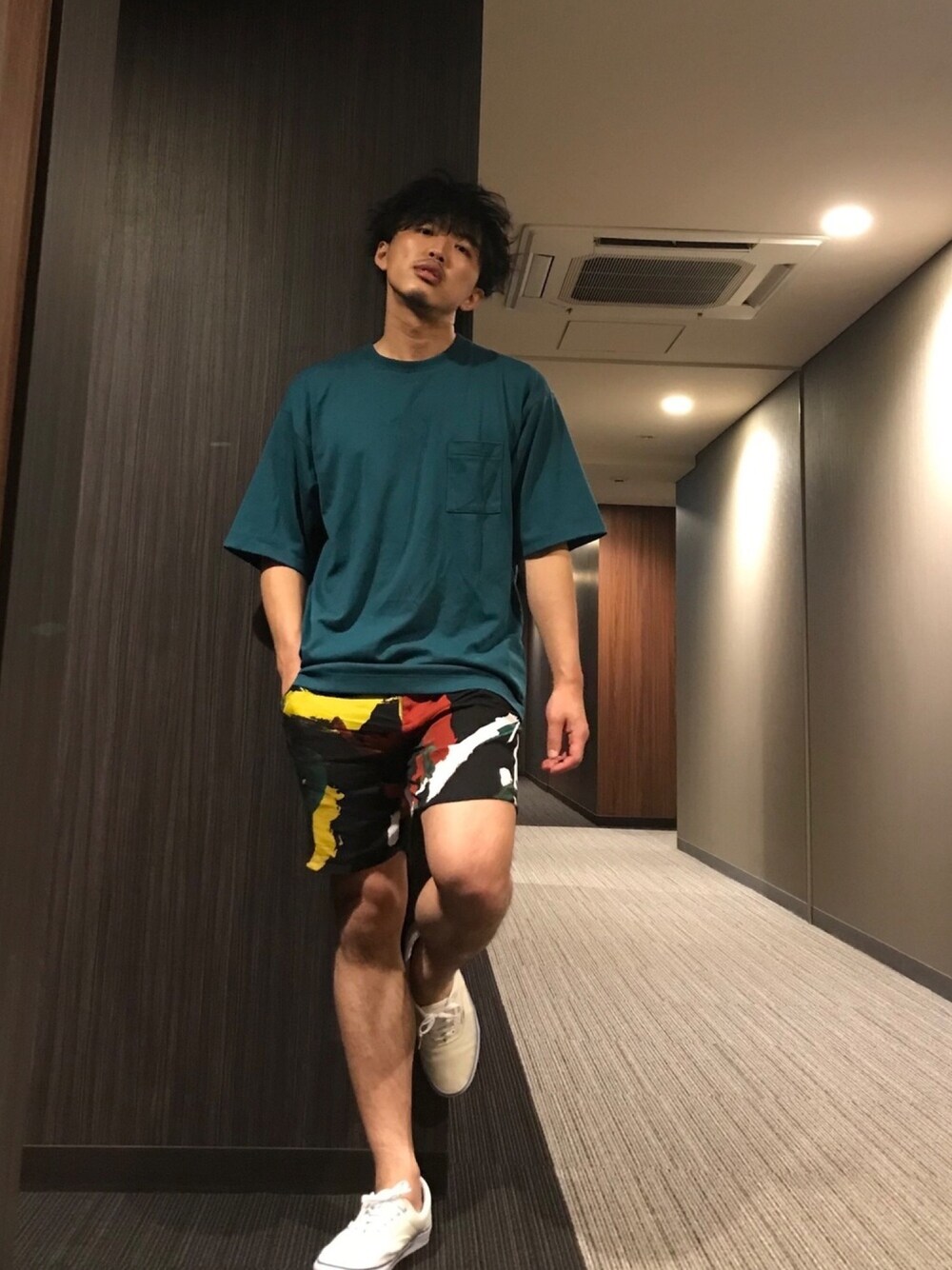 おはようございます☀ 今日のコーデ。 ディープグリーンのゆるTに柄ショーツの夏コーデ。 今日も素敵な一日をお過ごしください🙌