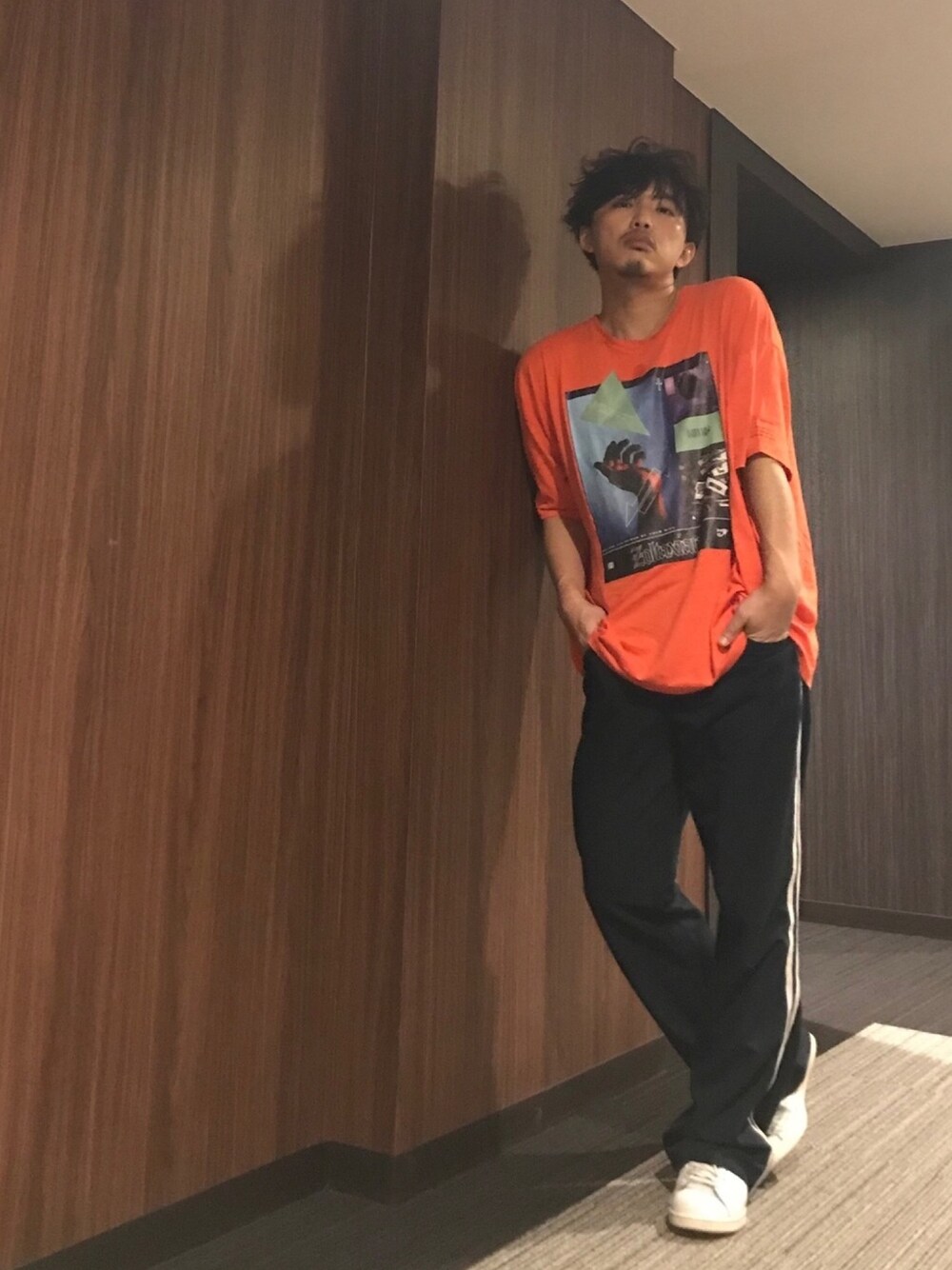おはようございます☀ 今日のコーデ。 今日もラインパンツ笑 に、オレンジのTシャツ。 毎日楽ちんコーデです✨ 今日も素敵な一日をお過ごしください🙌