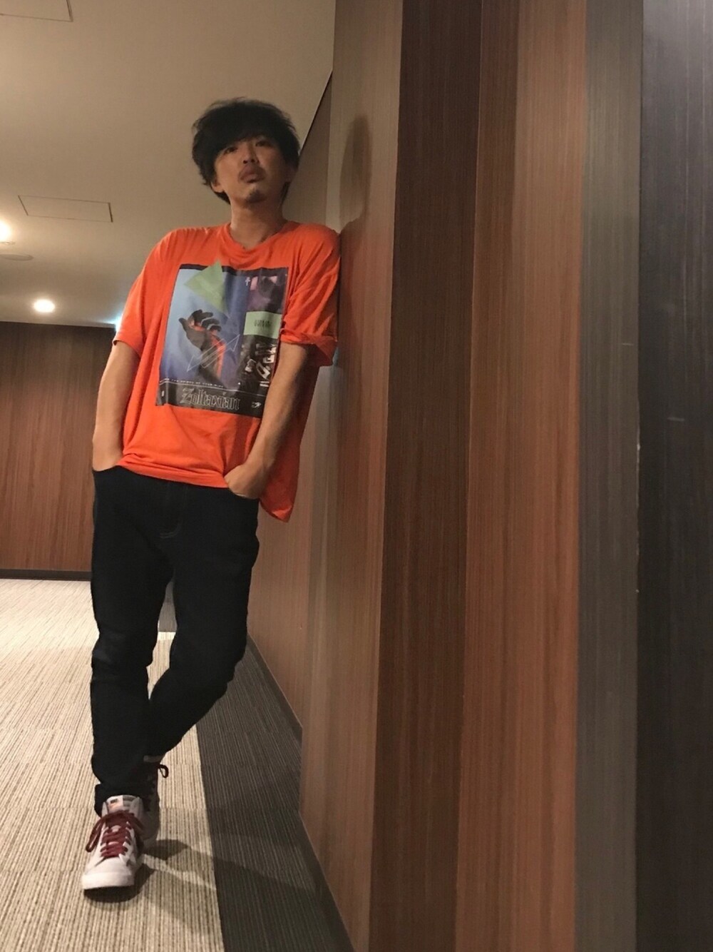 おはようございます☀ 今日のコーデ。 ゆるーいオレンジのプリントTに、股上深めのサルエルテーパードデニム。 足元はハイカットのスニーカーで👟 今日も素敵な1日をお過ごしください🙌