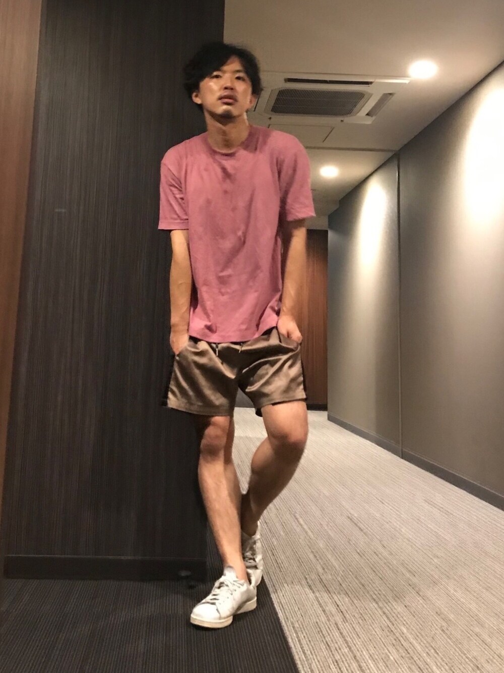 おはようございます☀ 今日のコーデ。 無地のピンクTに光沢感のあるサテンショーツ。 毎日暑いとビーサンばっかになるから、たまにはスニーカーを👟 今日も素敵な一日をお過ごしください🙌