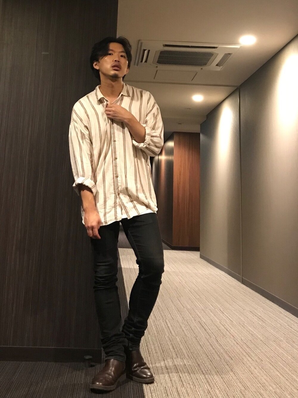 おはようございます☀ 今日のコーデ。 ゆるストライプシャツ。 下はスキニーでメリハリ。 今日も素敵な一日をお過ごしください🙌