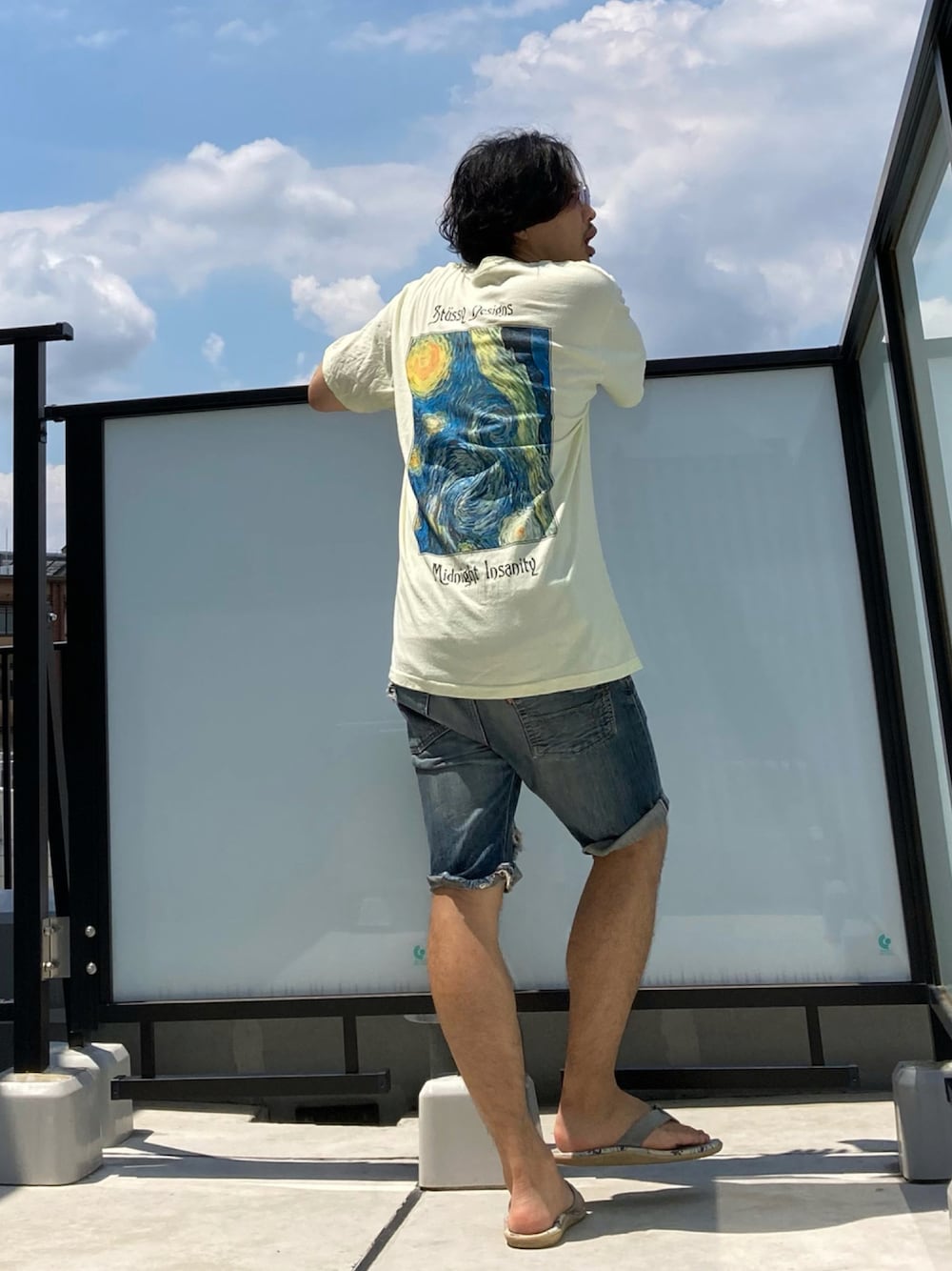 おはようございます☀ ひさびさ笑 今日のコーデ。 バックプリントのイエローのTシャツにデニムのショーツのラフスタイル。 今日も素敵な一日をお過ごしください🙌