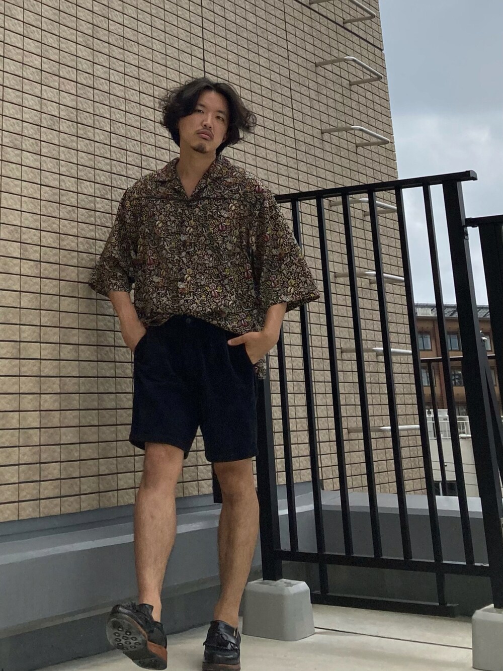 おはようございます☀ ひさびさの今日のコーデ。 黒ベース。やんちゃ目の柄シャツもショーツと合わせるとマイルドに✨ 今日も素敵な一日をお過ごしください🙌
