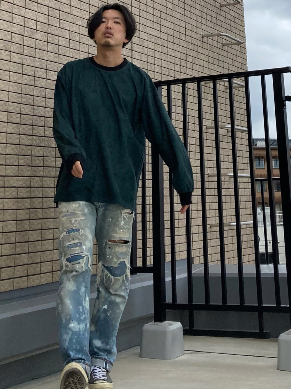 おはようございます☀ 今日のコーデ。 秋らしく深いグリーンのフェイクスウェードのトップス。 今日も素敵な一日をお過ごしください🙌