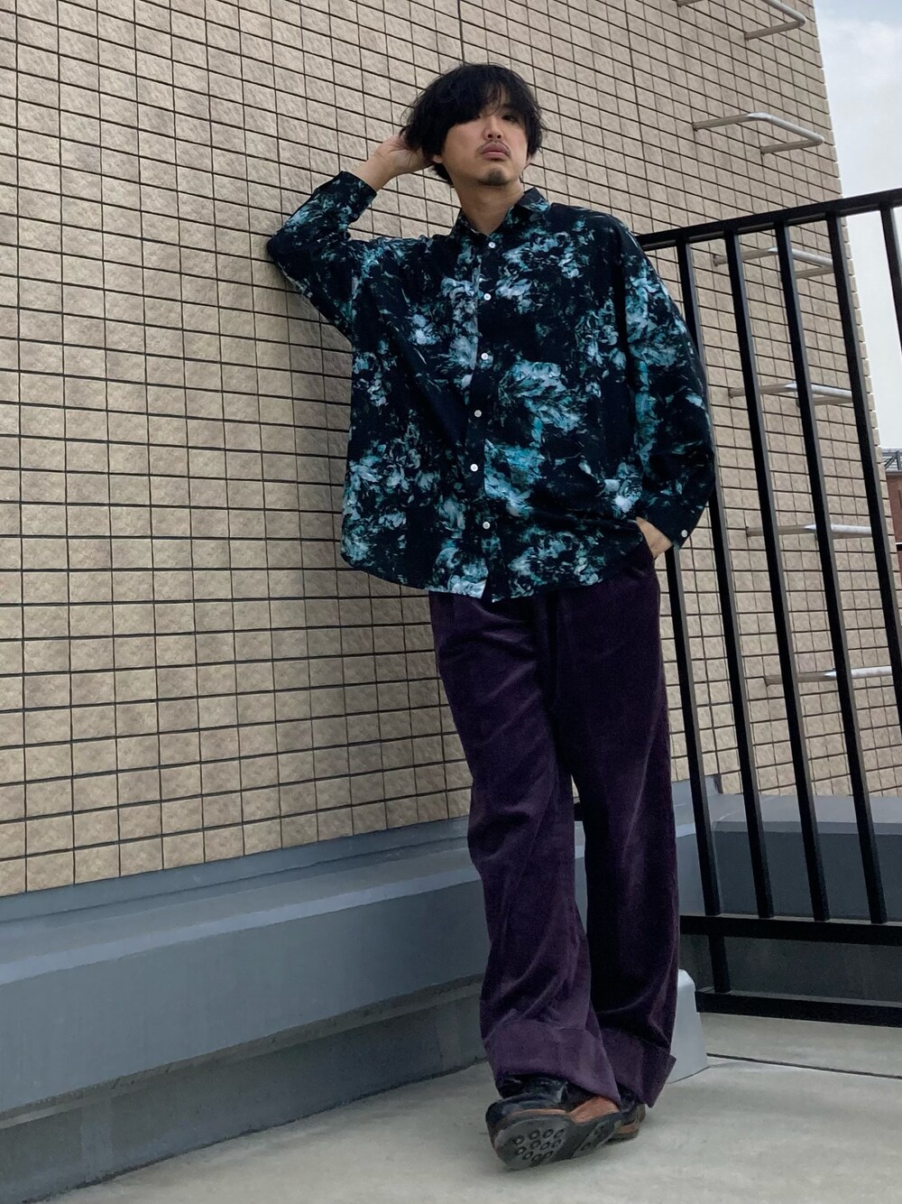 おはようございます☀ 今日のインナーコーデ。 花柄のゆるシャツにワイドシルエットのコーデュロイパンツ。 ワイドながらにキレイなシルエットです。 今日も素敵な一日をお過ごしください🙌