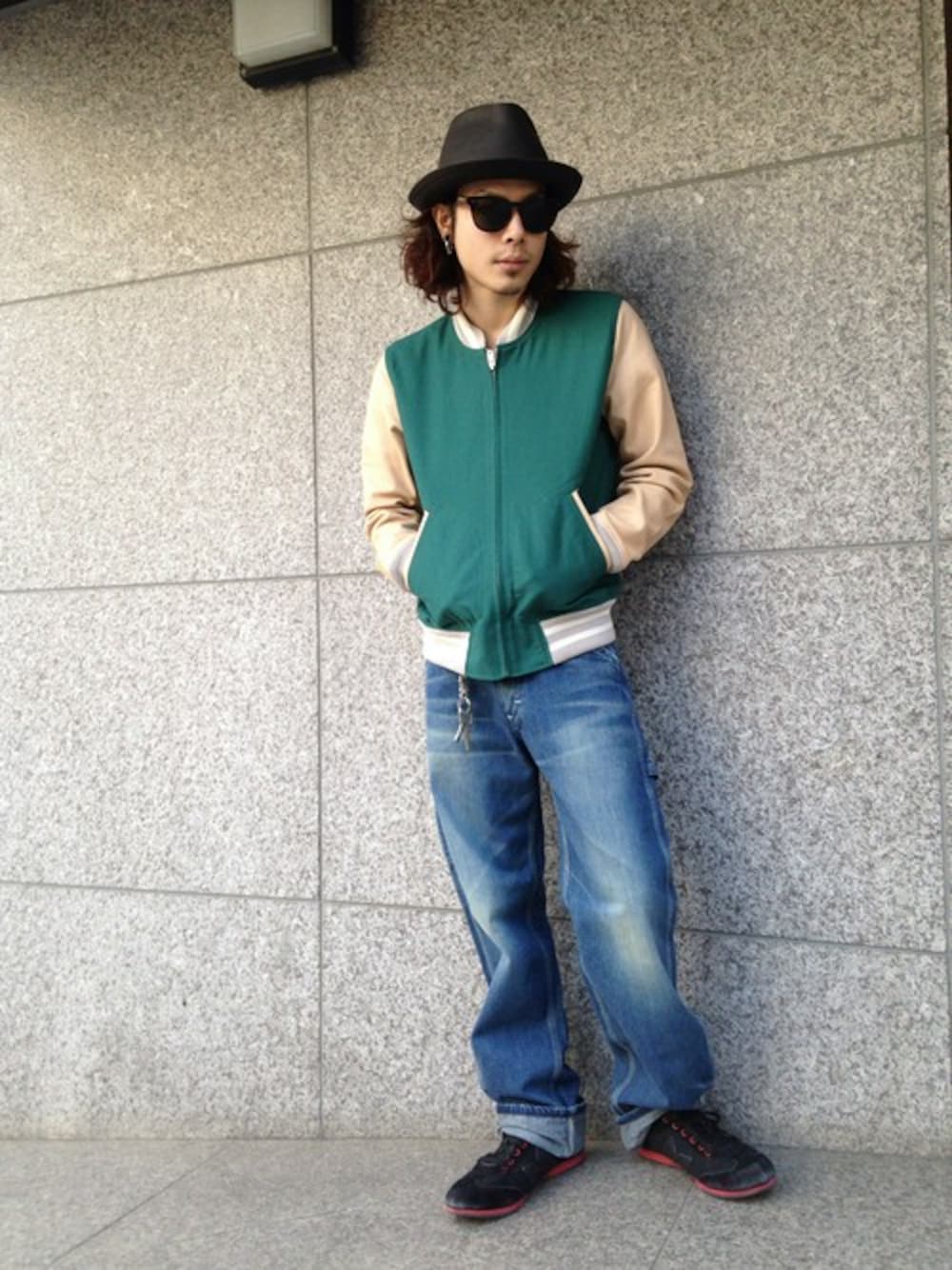 クラシックなアメカジスタイルです。 太めのパンツは動きやすくて楽です。