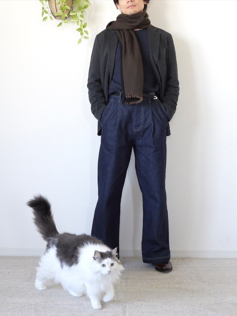 テーラードジャケットとデニムの合わせにハマっています。 ZARA SRPLSのデニムがガッツリ太いのにカジュアルすぎないのでバランス◎ レザーシューズで足元を締めればこういうワイドデニムもトライしやすいですね。