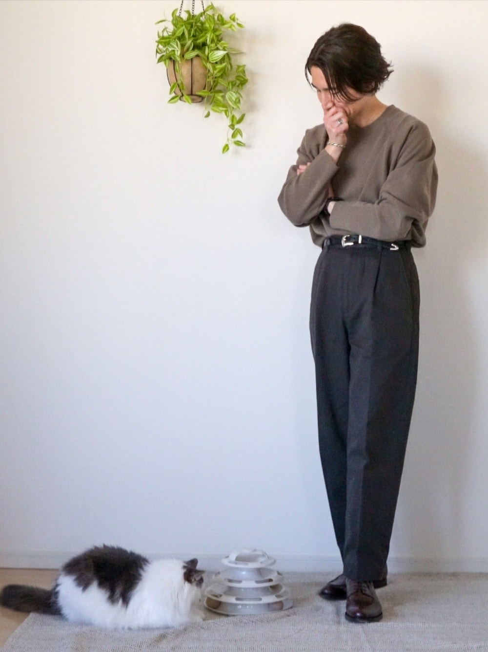 JunHoshiのチノパンツ「チノタックワイドパンツ」を使ったコーディネート