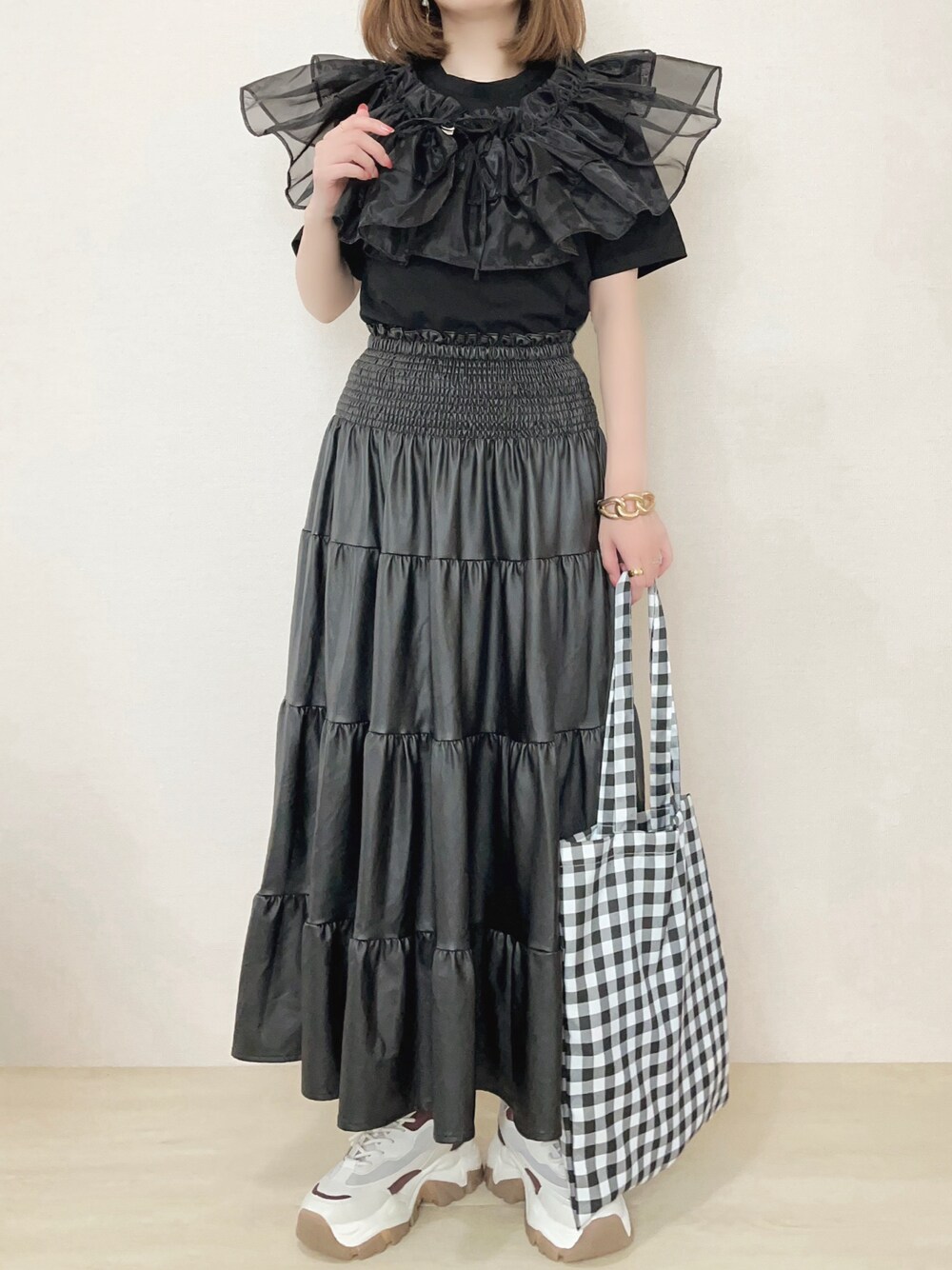 さにぃ。のアンサンブル「【SETアイテム】オーガンジーフリルカラー+シルケット半袖Tシャツ」を使ったコーディネート