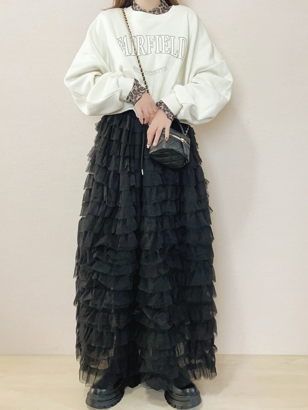 さにぃ。のスウェット「カレッジロゴスウェットプルオーバー/ボリュームスリーブトレーナー」を使ったコーディネート
