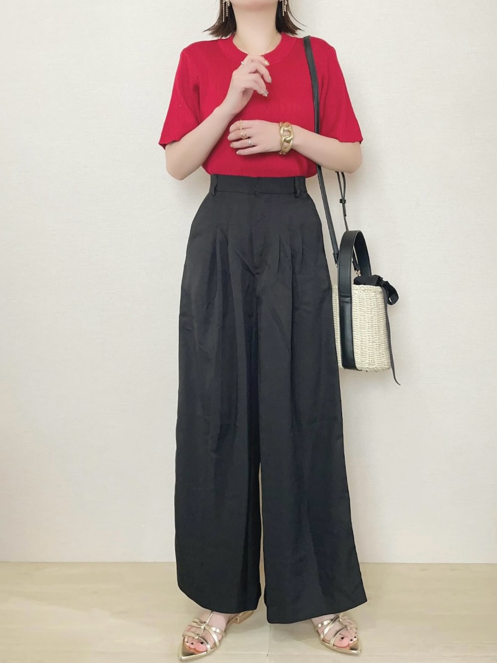 さにぃ。のスラックス「【S~XXL展開】ハイウエスト3タックボリュームワイドスラックスパンツ」を使ったコーディネート