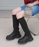 さにぃ。のブーツ「スニーカーソールロングブーツ < インヒールストレッチ・ニットコンビ >」を使ったコーディネート