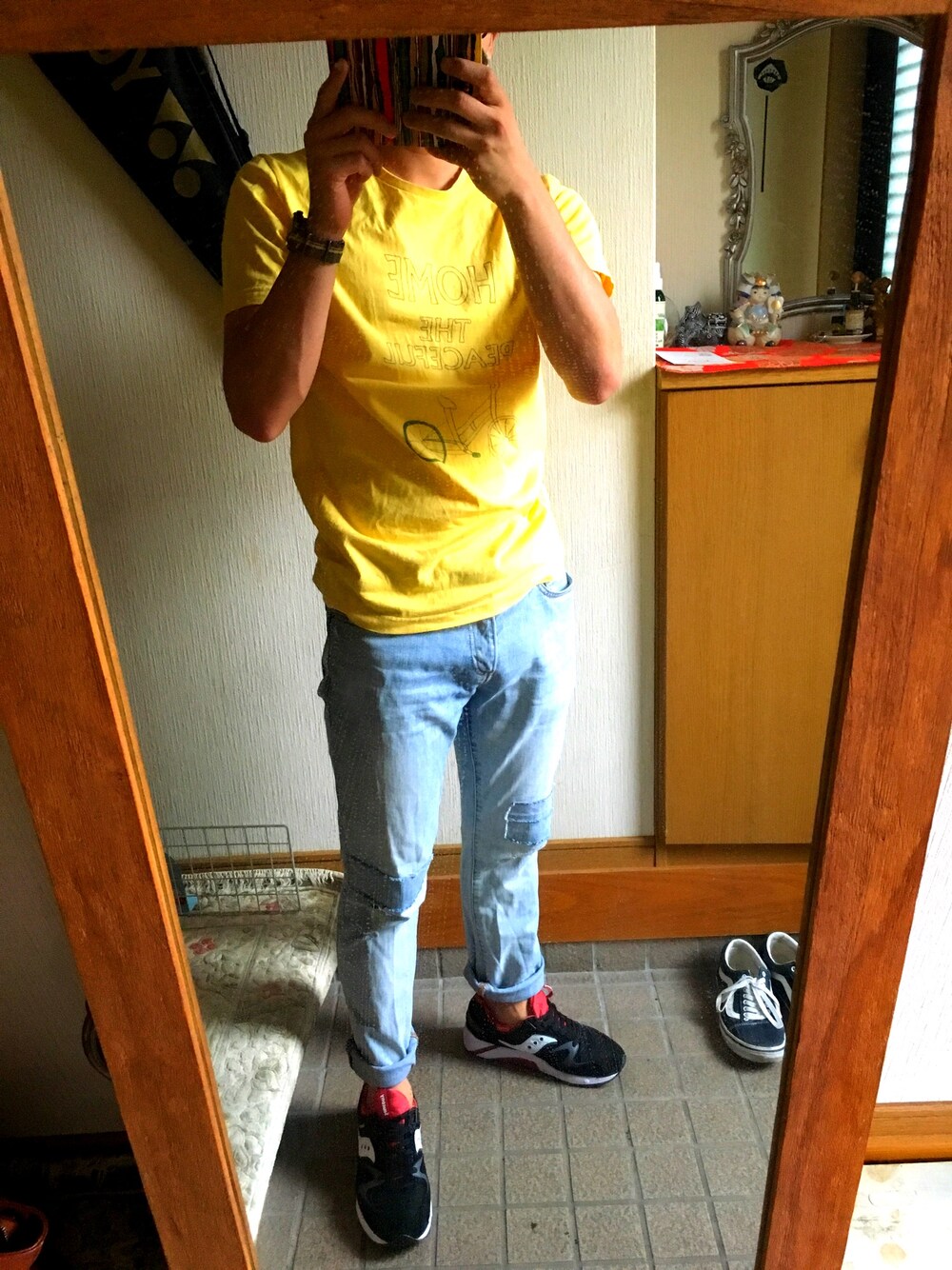 いっちーのスニーカー「Saucony サッカニー GRID 9000 グリッド9000 S70204-2 BLACK/RED」を使ったコーディネート