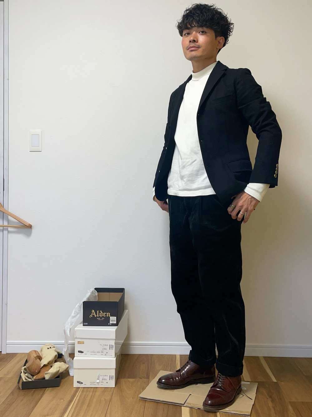 モノトーン ワイドパンツ コーデュロイスラックス 革靴 スタイリッシュさ トレンド リラックスサーフ感 いいとこ取りしたコーディネート