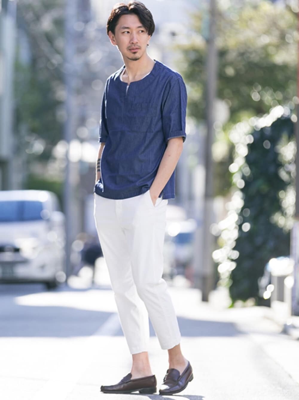 Juniyaのシャツ/ブラウス「ROSSO MEN プルオーバーライトデニムシャツ」を使ったコーディネート