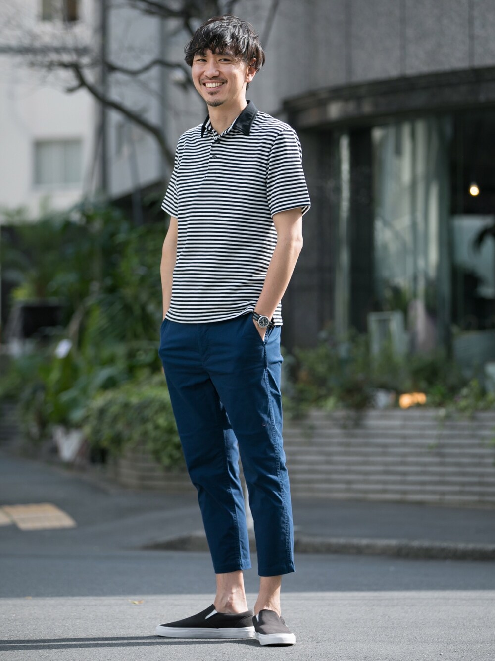 Juniyaのポロシャツ「【抗菌防臭】抗菌スリムボーダーポロシャツ」を使ったコーディネート
