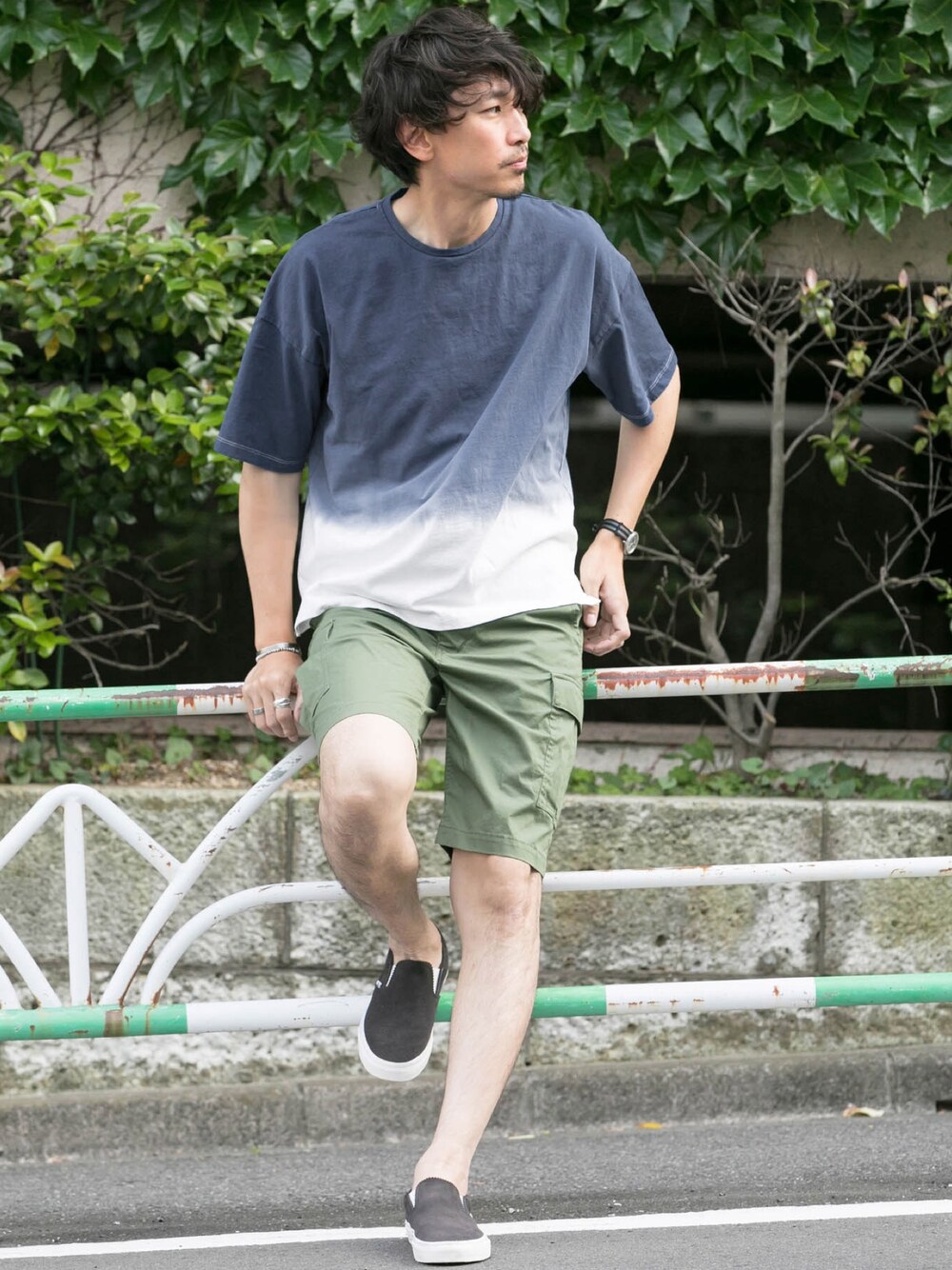 段染めのグラデーションカラーがインパクト大です◎ カーゴショーツもすっきり目を選べば、大人っぽさを損ないません。