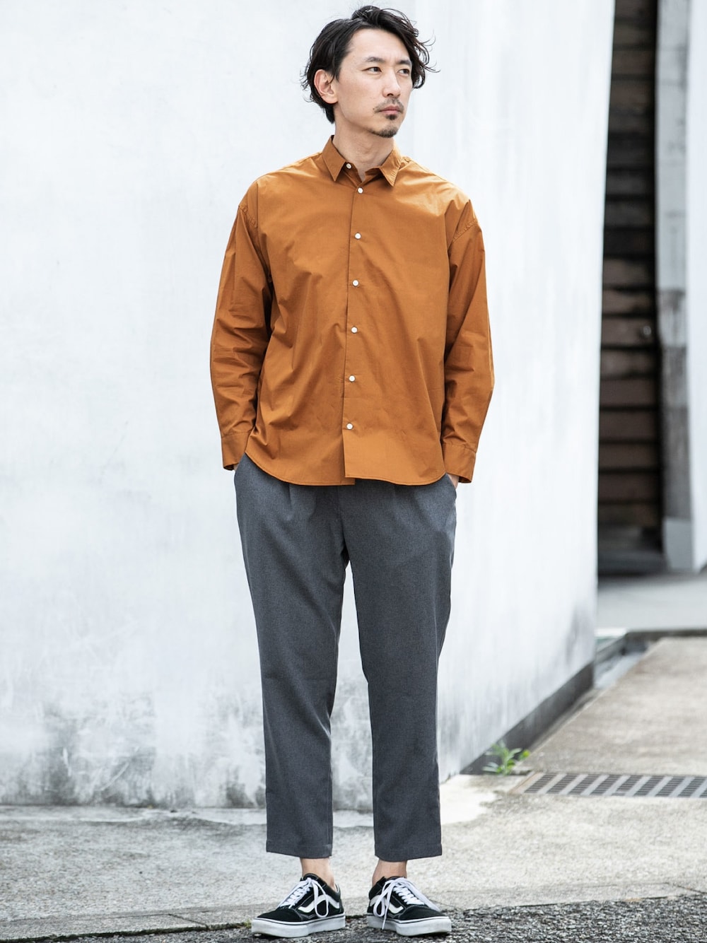 定番のシャツスタイルも、シルエットとカラーリング次第でさらっと旬な感じに◎ この秋冬は、色んな「ブラウン」の色味がオススメです。