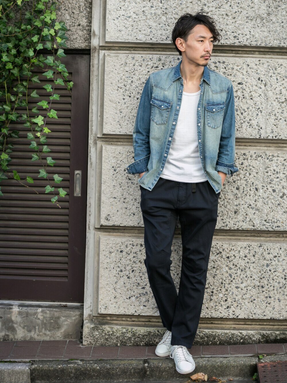 Juniyaのシャツ/ブラウス「ROSSO MEN ストレッチダメージデニムウエスタンシャツ」を使ったコーディネート