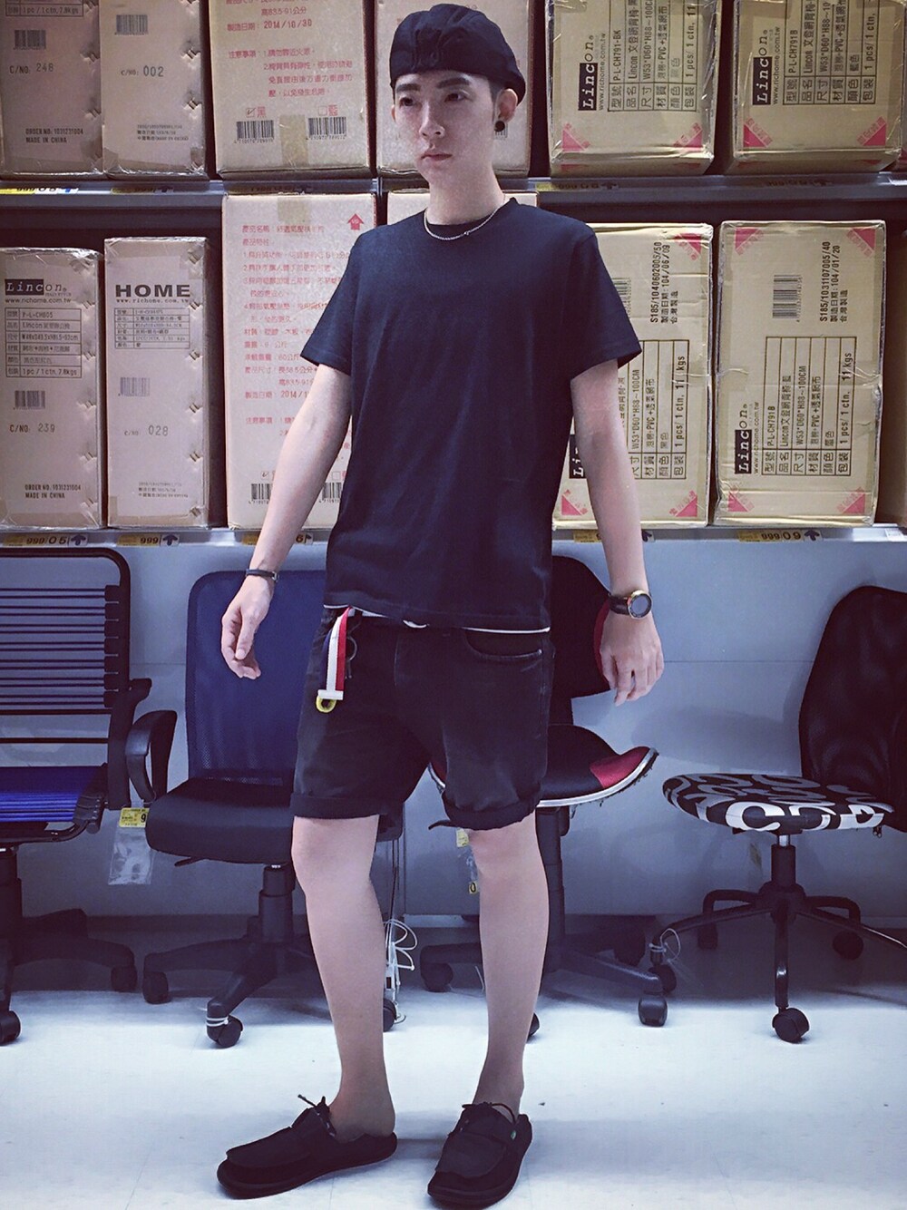 ブラック系のアナログ腕時計を着用したメンズの夏コーディネートの1枚目の写真