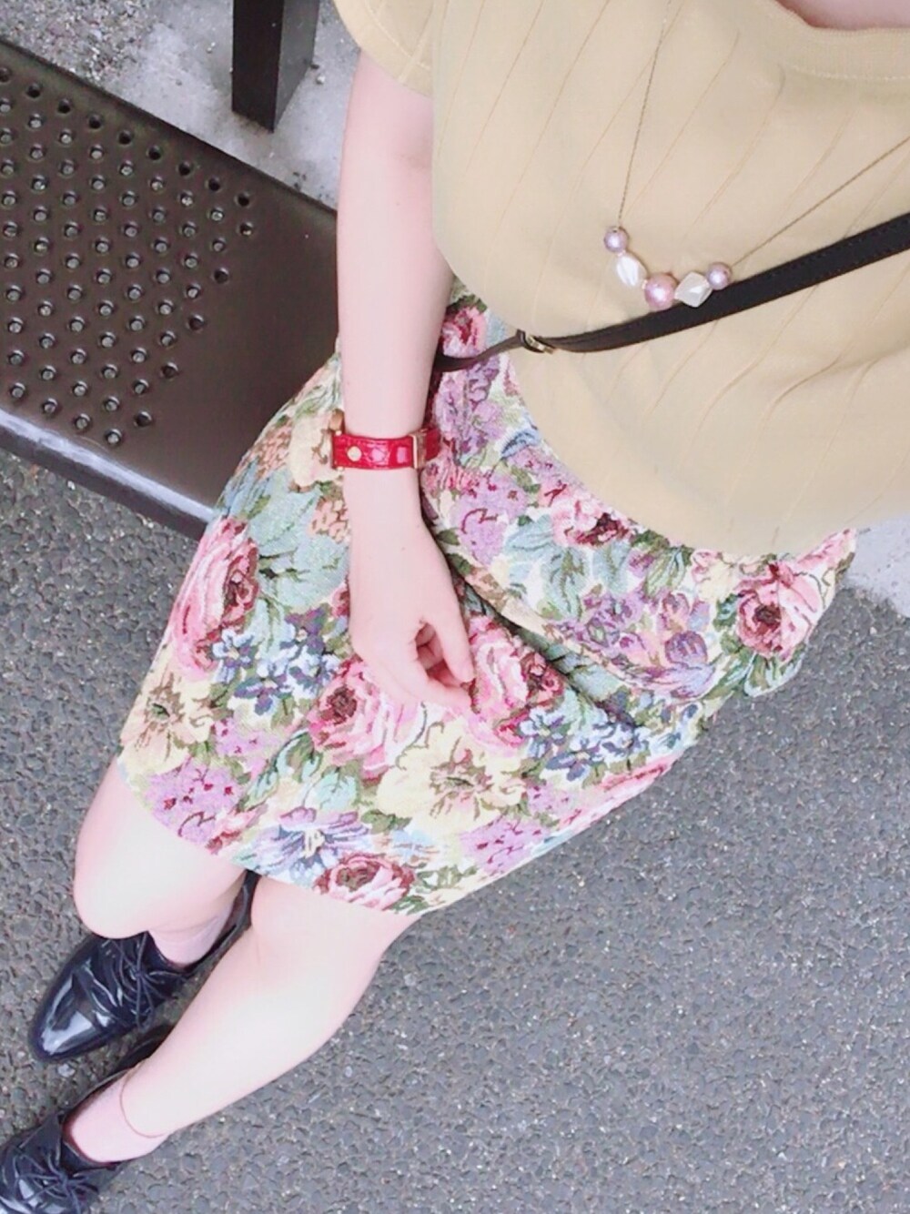 花柄スカートで お出かけコーデ。