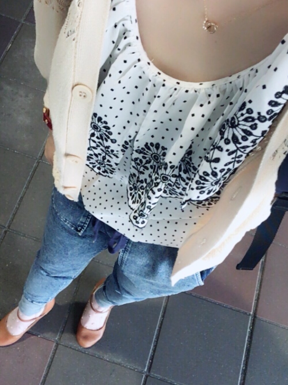 カーディガンと スウェットデニムでゆるコーデ。