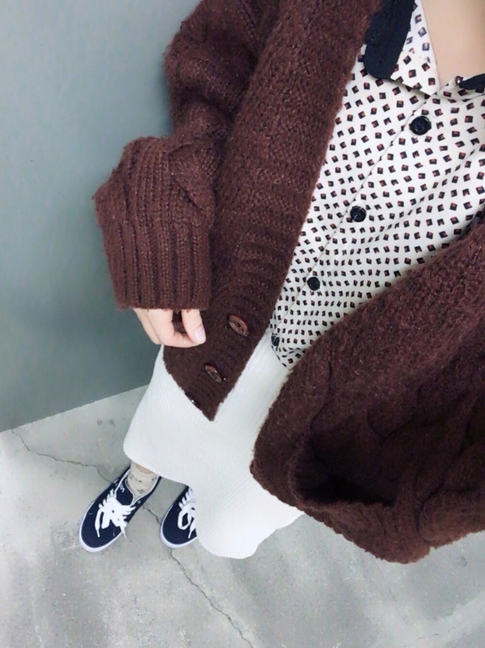 レトロシャツと 大きめカーデの組み合わせがかわいい! ☆こちらのコーデは オファーをいただき、 zozotownに掲載されました!