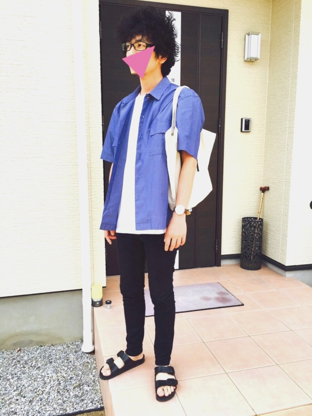 GUのビックシャツとユニクロのポケTでコーデしてみました! インナーのポケTはXLでビックシルエット風にしてみました! サイズ シャツ M ポケT XL パンツ S サンダル27
