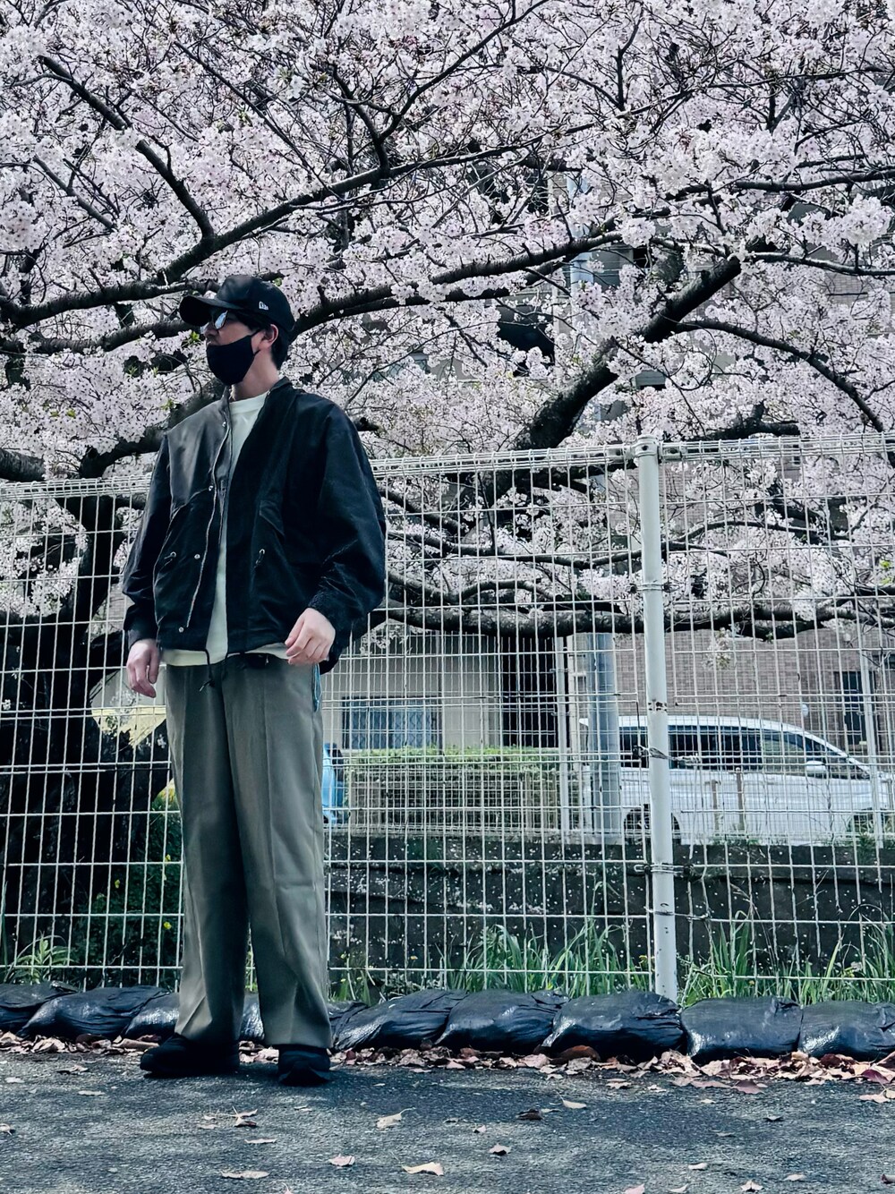少し前ですが桜を見に行った春っぽいカーキパンツコーデ