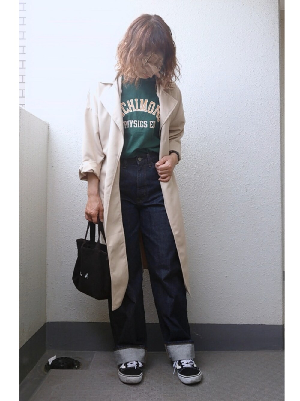 junのデニムパンツ「ハイライズワイドストレートジーンズ」を使ったコーディネート