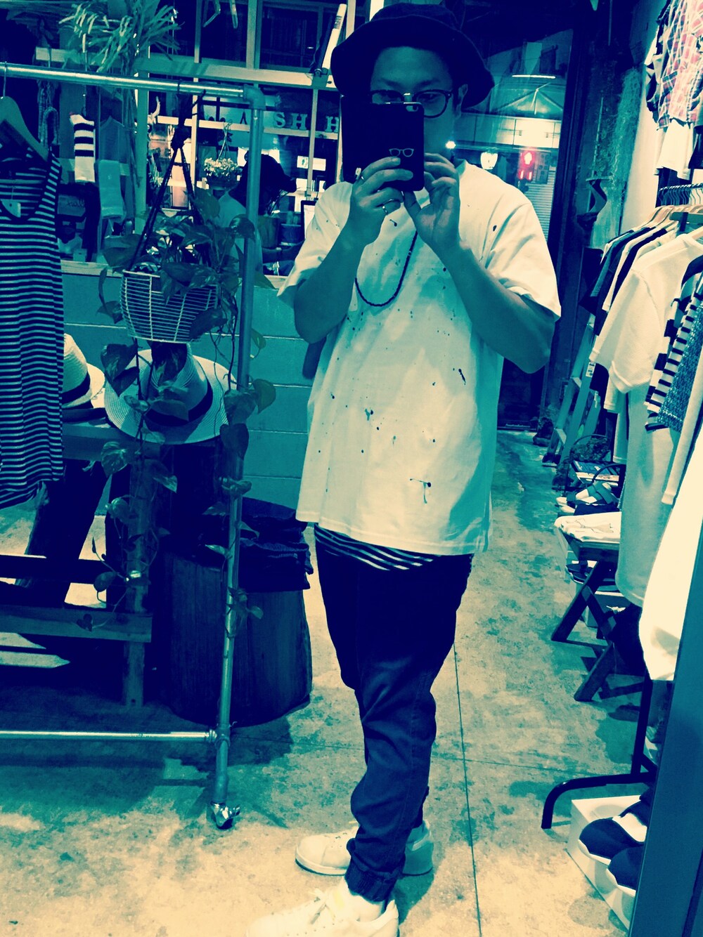 買った服をその場で着替えてそのまま帰るのが好きです。笑 バケットハットとジョガーパンツとスニーカーは元々持ってたものです! オーナーさん手作りのシャツとロング丈のボーダータンクを買いました!