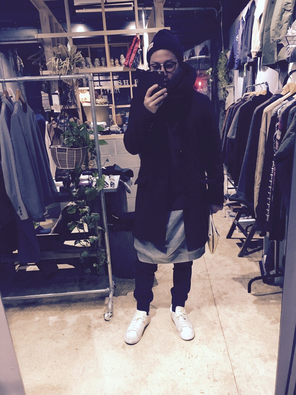 去年買ったコートに 今日買ったRemakeのロングスウェットパーカー +ジョガーパンツ 上下のバランス取れて良かったー